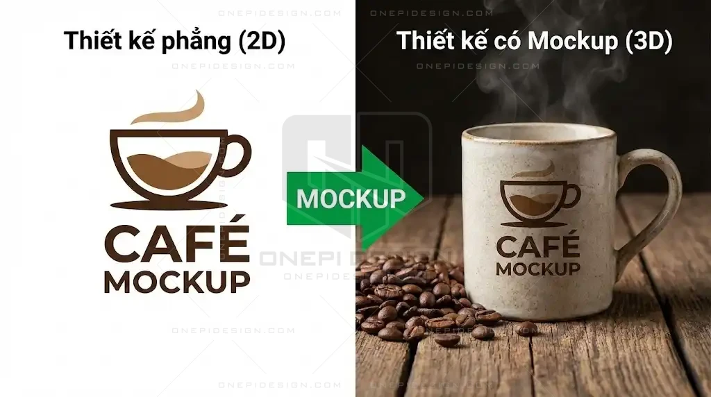 - Ví dụ: Thay vì gửi file ảnh thiết kế logo phẳng, bạn đặt logo đó lên một tấm danh thiếp (Namecard), in lên áo thun, hoặc khắc lên biển hiệu gỗ.