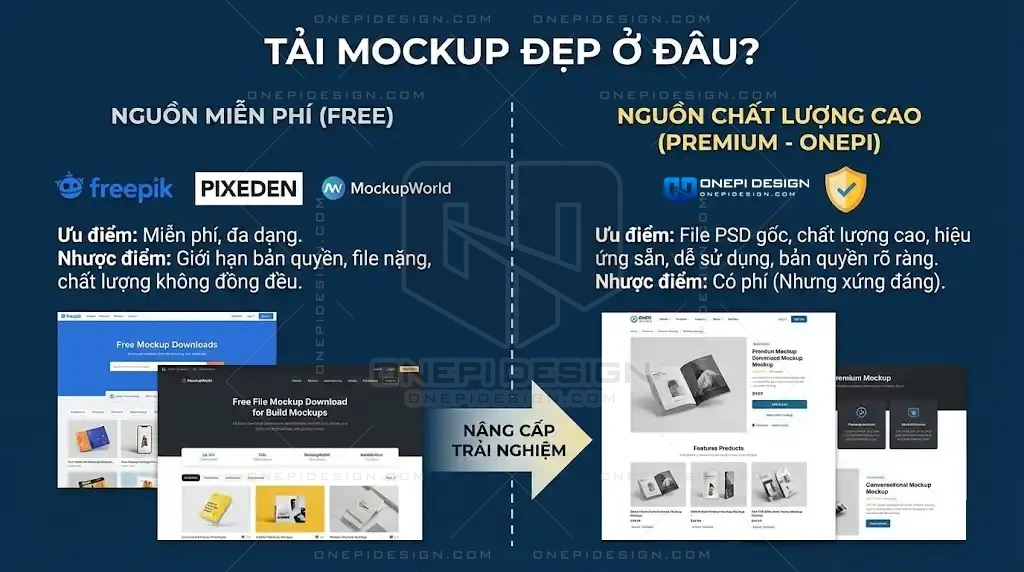 - Nguồn miễn phí: Freepik, Pixeden, MockupWorld (Tuy nhiên thường bị giới hạn bản quyền hoặc file khá nặng).