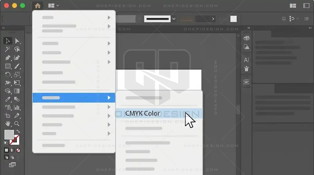 - Vào File > Document Color Mode > Chọn CMYK Color nếu bạn định in ấn.