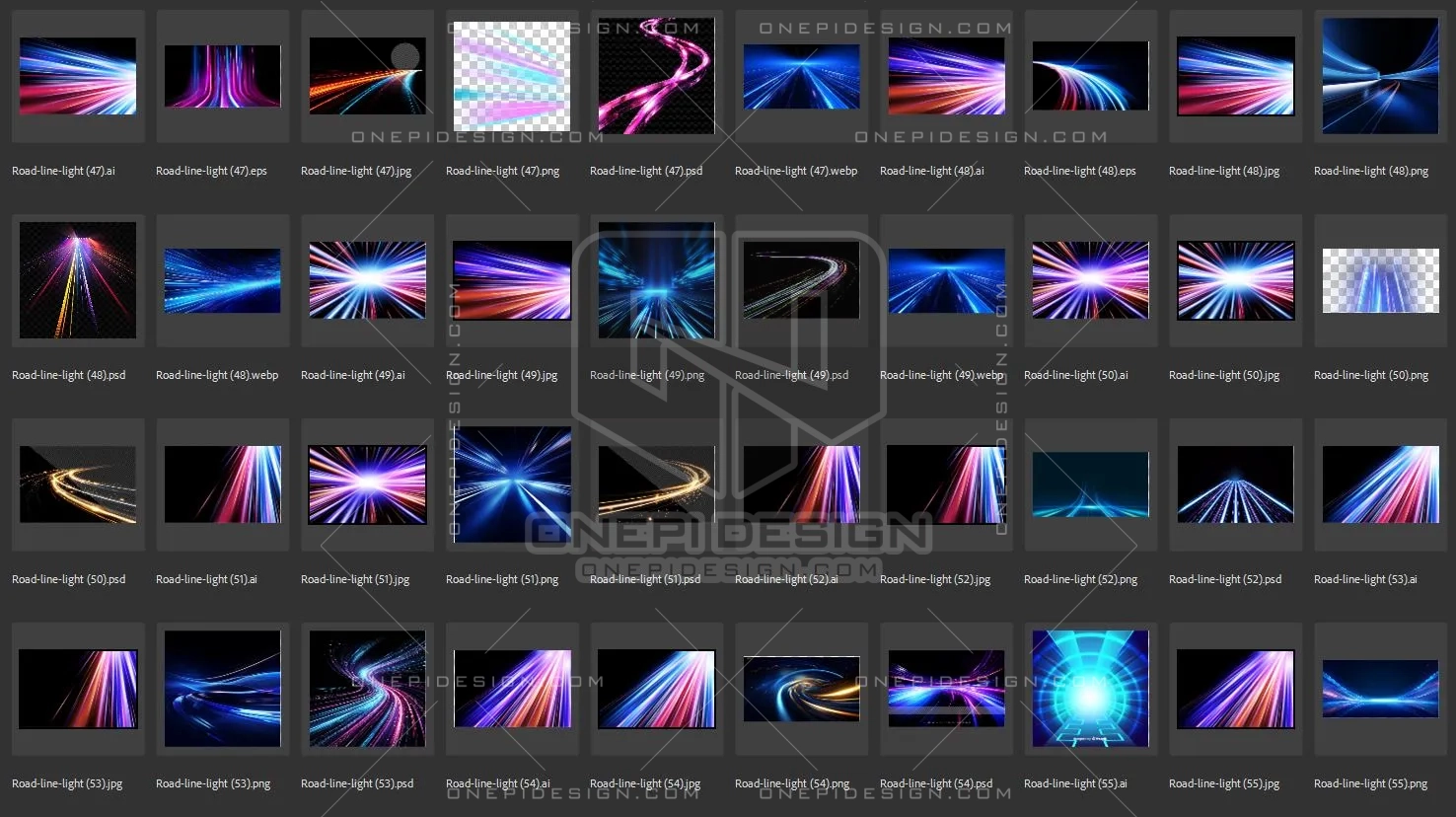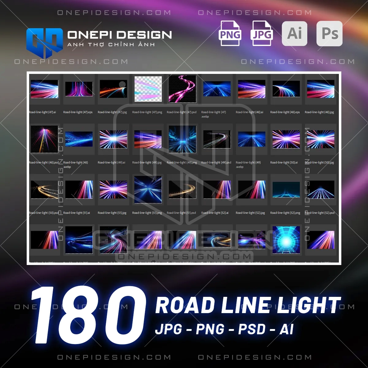 Sở hữu ngay bộ 180 Road Line Light từ ONEPI DESIGN. Cung cấp nhiều định dạng (JPG, PNG, PSD, AI), giúp bạn tạo hiệu ứng tốc độ, công nghệ cho mọi dự án thiết kế.
