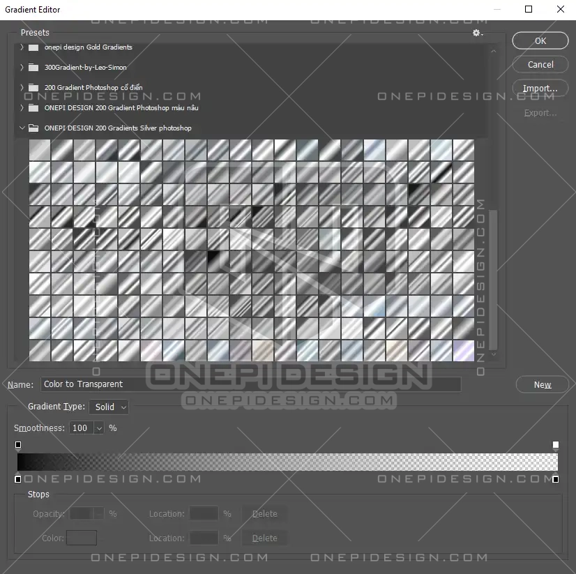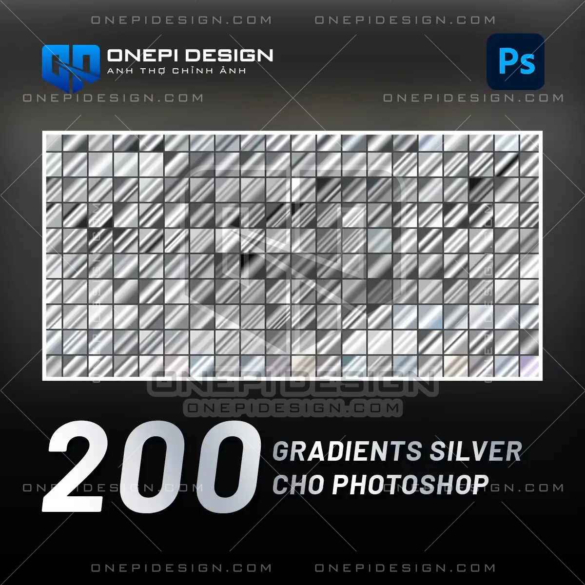 Sở hữu bộ 200 Gradients Photoshop Silver từ ONEPI DESIGN. Tạo hiệu ứng chuyển sắc bạc, kim loại mạnh mẽ và tinh tế cho các dự án thiết kế cao cấp.
