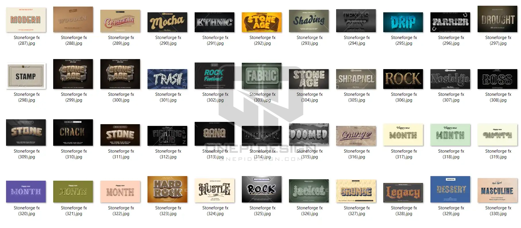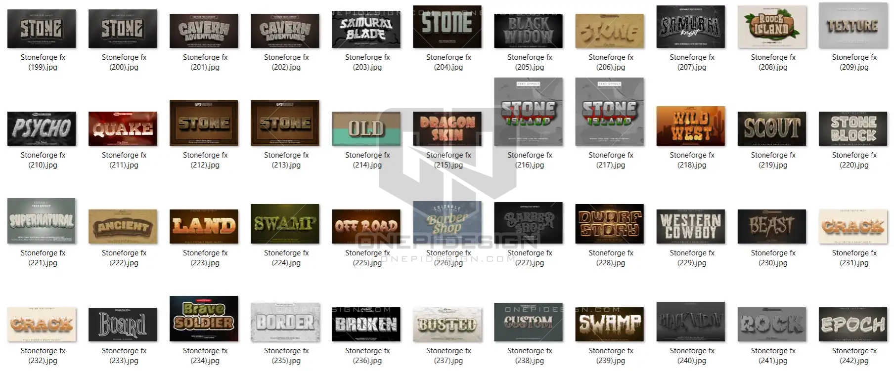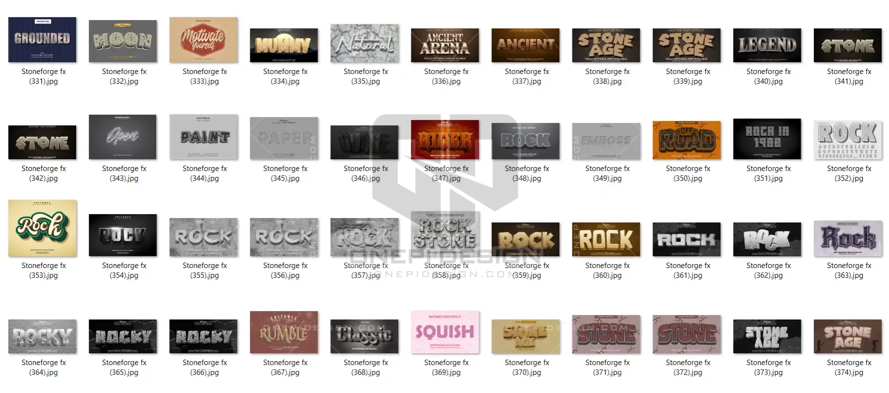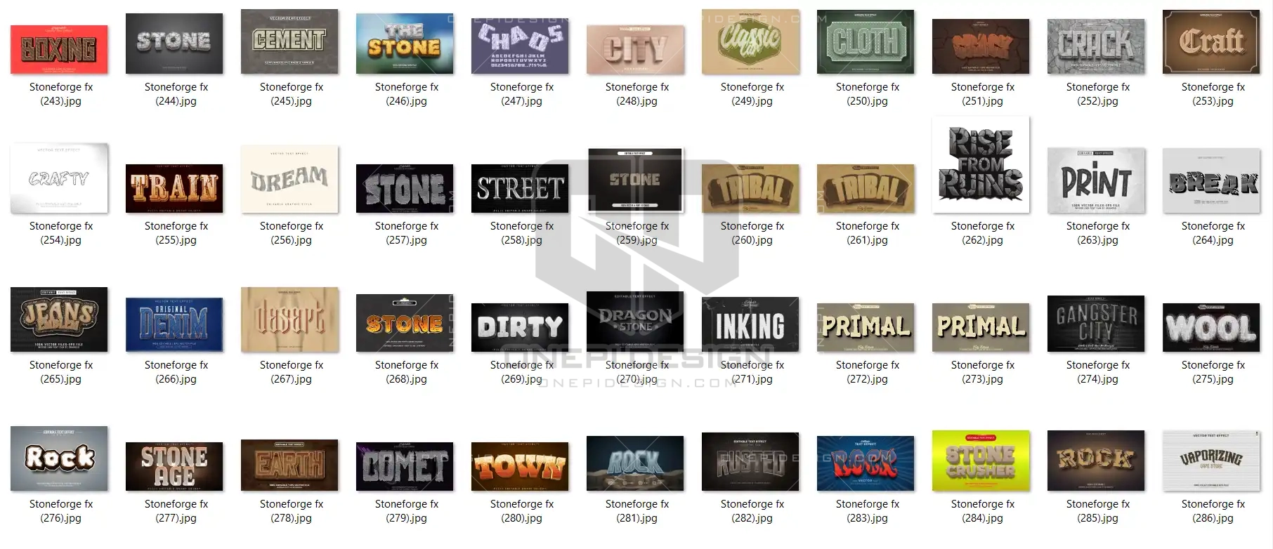 Tải 400 Text Effect Stoneforge FX | Bộ Hiệu Ứng Chữ Đá, Kim Loại Đỉnh Cao cho Illustrator
