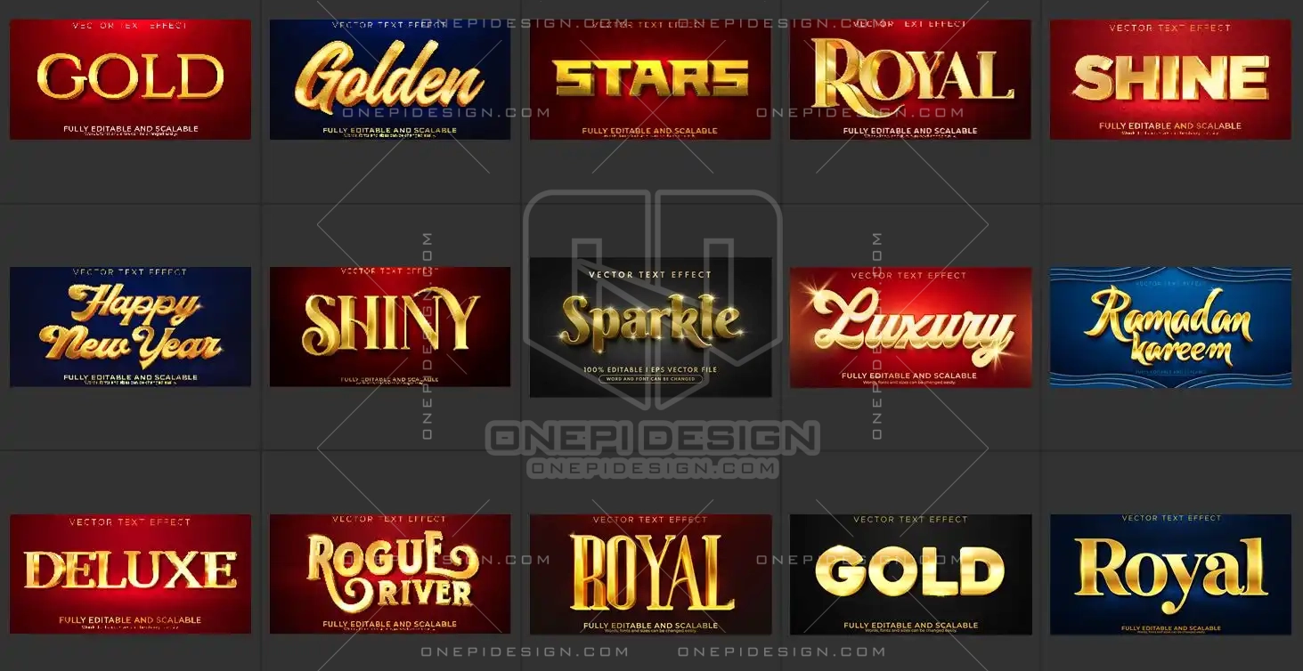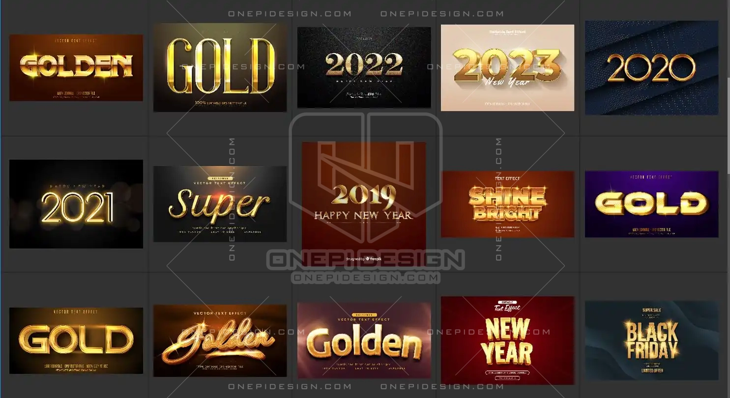 Bộ sưu tập 50 Styles Gold Text Effect Illustrator được thiết kế để mang đến sự tiện lợi và đa dạng: