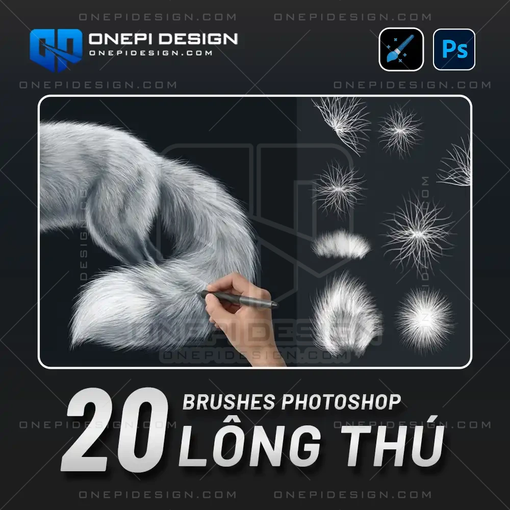 Bộ 20 Brushes Photoshop Lông Thú từ ONEPI DESIGN chính là giải pháp giúp bạn rút ngắn 90% thời gian làm việc. Được thiết kế dựa trên cấu trúc thực tế của lông động vật, bộ cọ này giúp bạn tạo ra những bộ lông mượt mà, bồng bềnh chỉ với vài nét lướt bút.