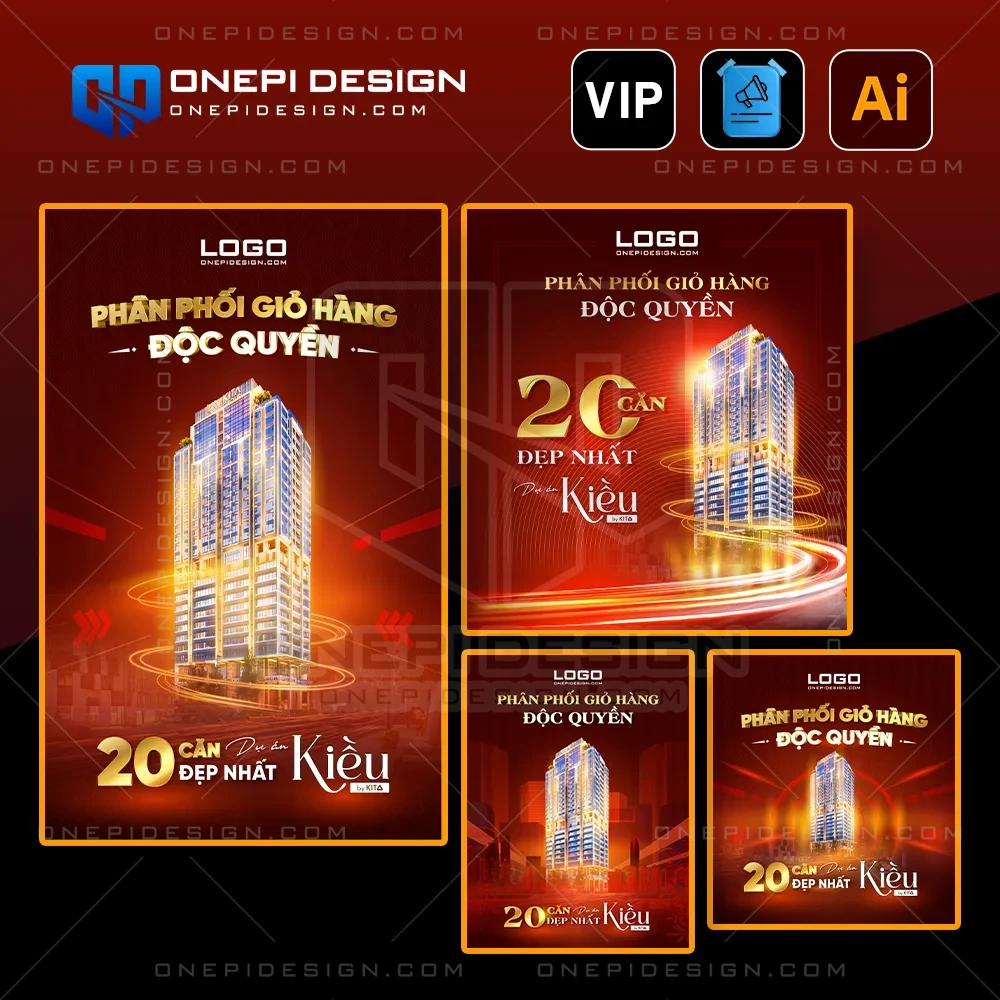 file ai poster phân phối giỏ hàng tone đỏ vàng 4 kích thước là một trong những tài nguyên đồ họa đẳng cấp nhất dành riêng cho các chiến dịch mở bán bất động sản hạng sang. Thiết kế này mang đậm tính chiến lược. Nó giúp các sàn giao dịch và agency quảng cáo truyền tải trọn vẹn thông điệp về sự giới hạn và độc tôn.