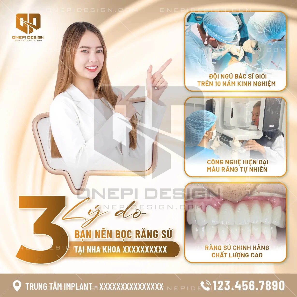 Sở hữu ngay mẫu banner nha khoa độc quyền từ ONPI DESIGN. Thiết kế 3 lý do bọc răng sứ, giúp bạn thu hút khách hàng tiềm năng.
