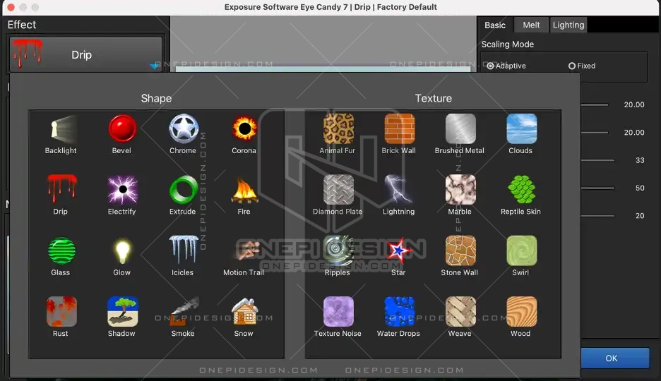 Tải và cài đặt Plugin photoshop Eye Candy 7 để tạo hiệu ứng lửa, khói, tuyết, và nhiều hiệu ứng 3D khác một cách nhanh chóng. Công cụ mạnh mẽ cho mọi designer mà ONEPI DESIGN giới thiệu đến bạn.